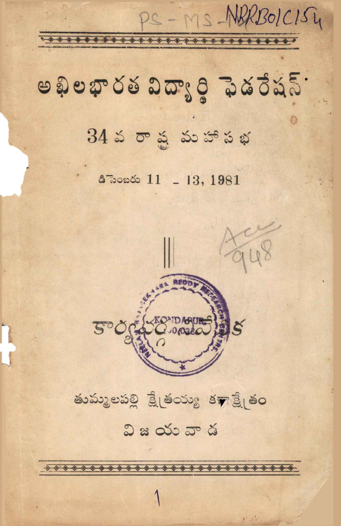 Year: 1988 | Pages: 24 | Shelf: MB ప్రజా సంఘాలు - 17