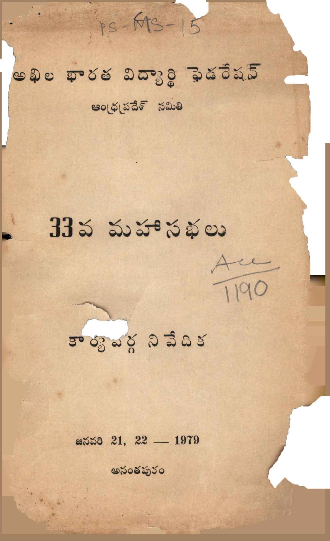 Year: 1989 | Pages: 31 | Shelf: MB ప్రజా సంఘాలు - 18