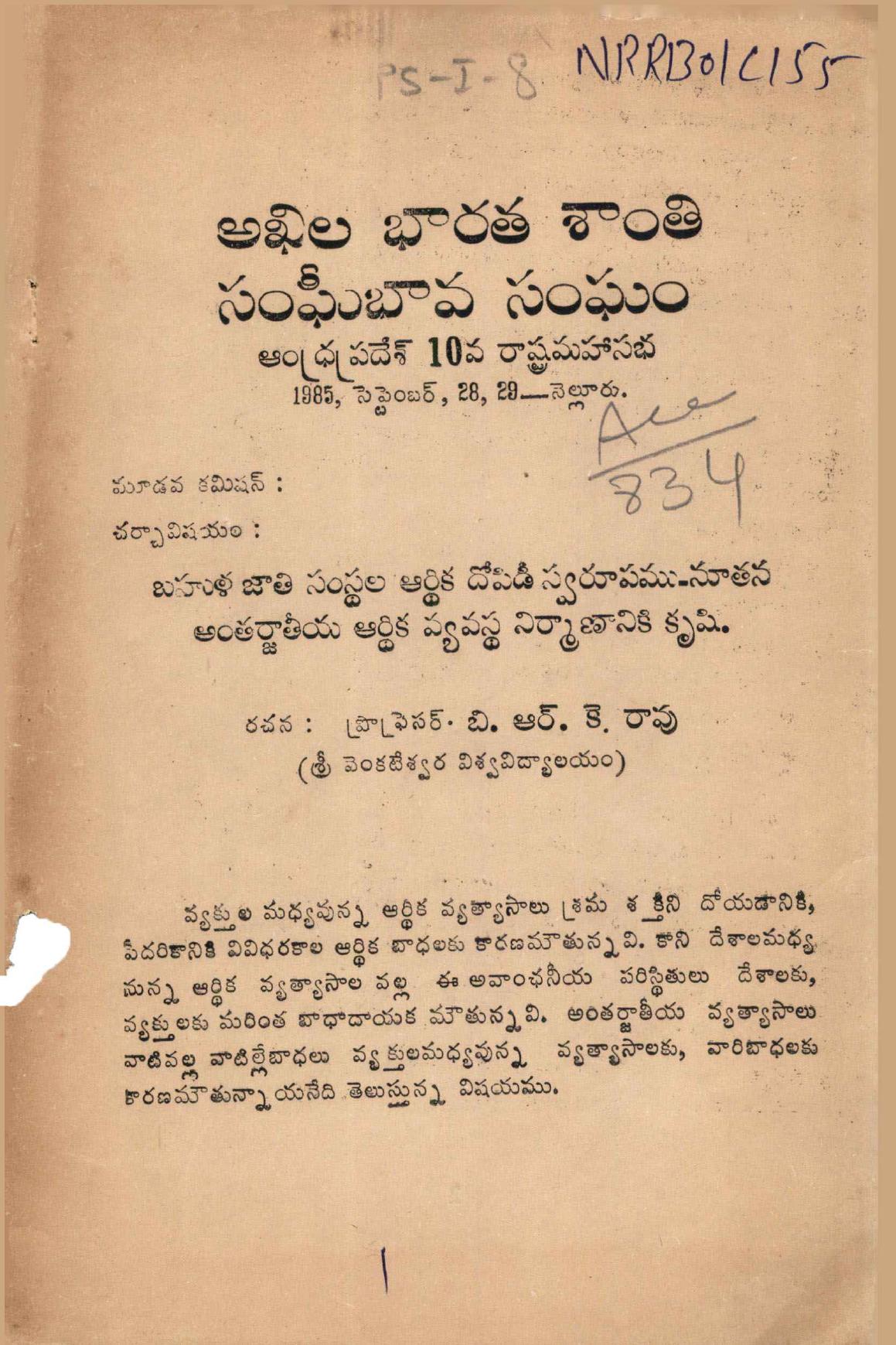 Year: 1985 | Pages: 28 | Shelf: PS-I 8