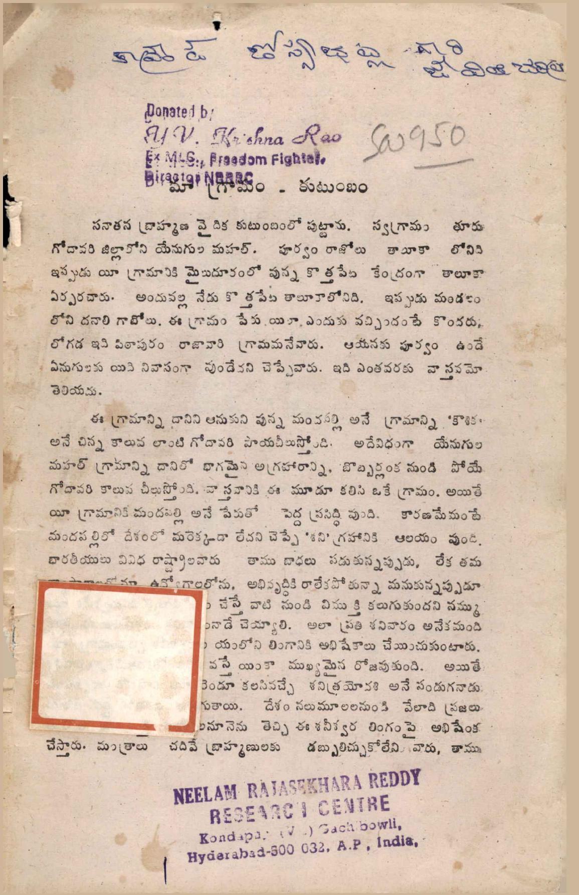 Year: ** | Pages: 19 | Shelf: MB స్వీయచరిత్ర -162