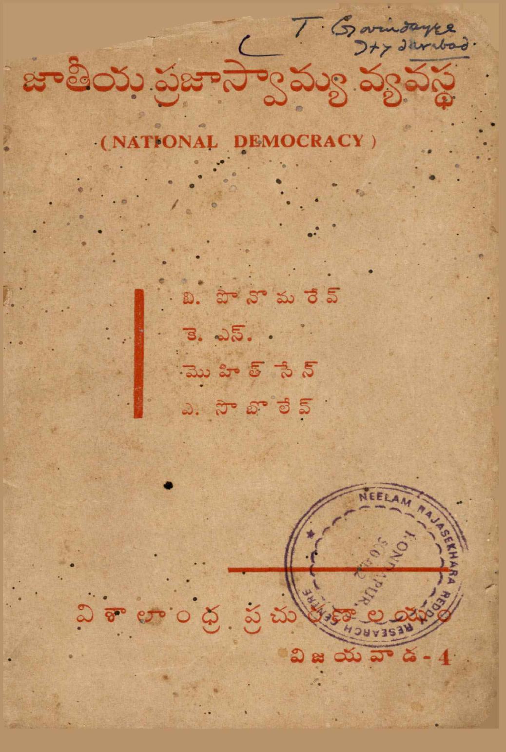 Year: 1984 | Pages: 100 | Shelf: MB పార్టీ పబ్లికేషన్ -66